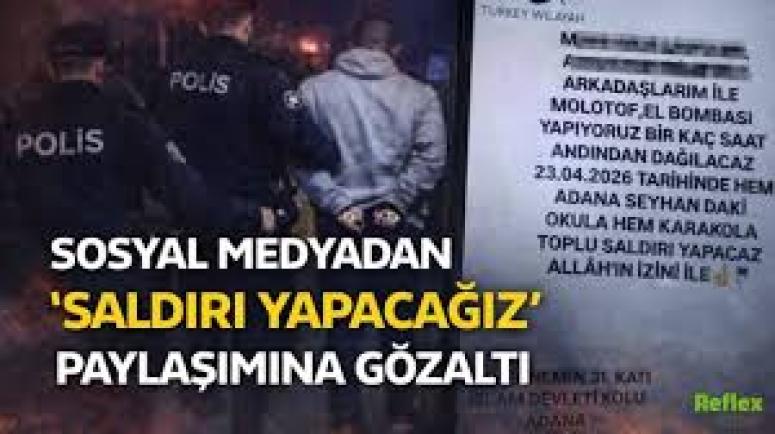 | Okul saldırılarının ardından güvenlik endişesi artarken, sosyal medyada yeni saldırı tehdidinde bulunan paylaşımlar da dikkat çekti. Adana’da bir şahsın, "Karakola ve okula saldırı yapacağız" paylaşımının ardından polis ekipleri harekete geçti. Şüpheli düzenlenen operasyonla gözaltına alındı. | ||