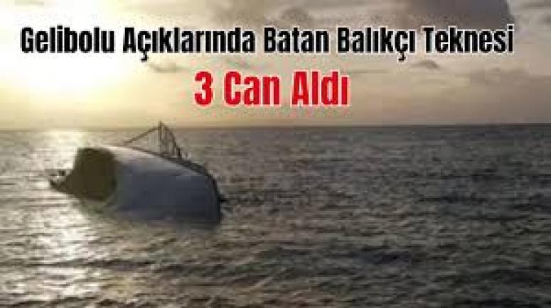 Gelibolu ilçesi açıklarında balıkçı teknesi battı. Olayda 3 kişi hayatını kaybederken, bir kişi ise bölgedeki gırgır teknesi tarafından kurtarıldı. | ||