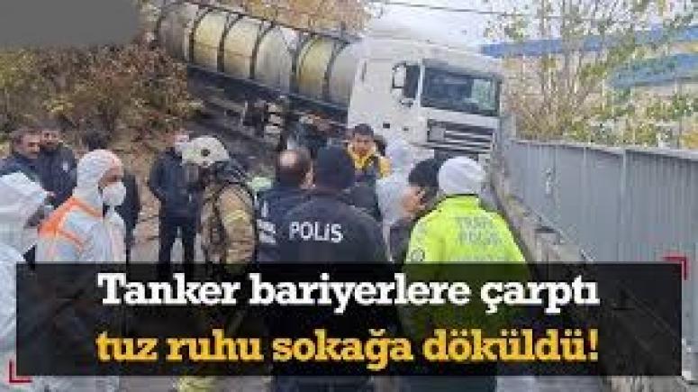| Tanker bariyerlere çarptı; yola kimyasal madde döküldü | ||